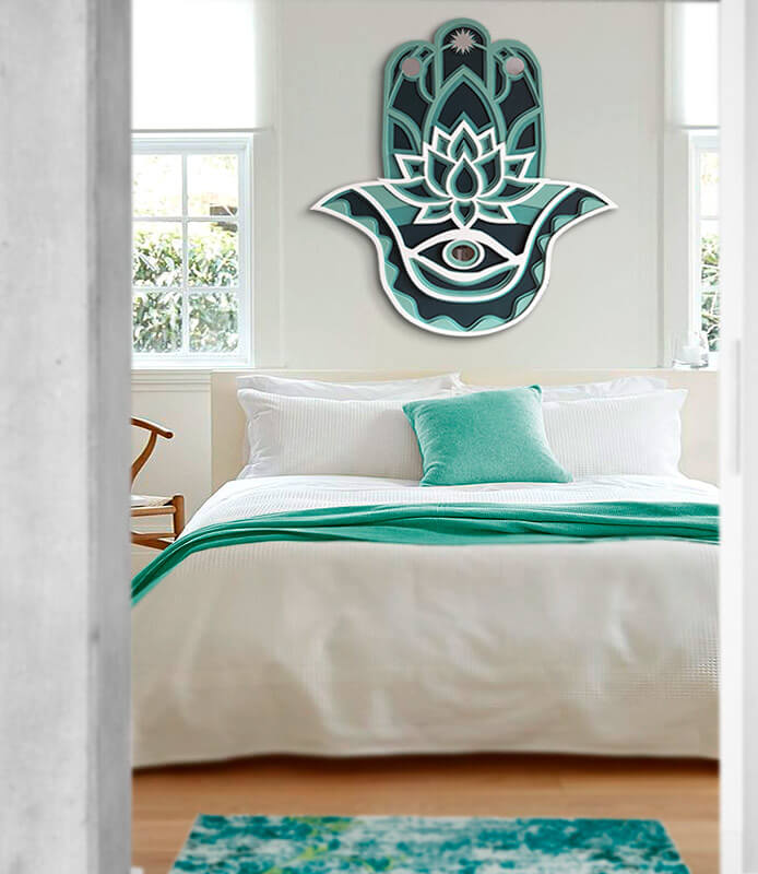 Crear espacios donde la decoración resalta, es un efecto simple y muy apreciado, en los cuadros y concretamente ahora en los mandalas esto lo podemos conseguir, si son tallados en madera, en sobre relieve de estuco, fibra.., los relieves captan la luz y acentúan las sombras, como resultado, conseguimos decorar con cuadros vivos que transmiten movimientos y depende de la luz estos cambian su percepción, como es el caso de los cuadros en plata, estos reflejan la luz a la perfección, de día son un cuadro con unos matices y por la noche estos tonos cambian,