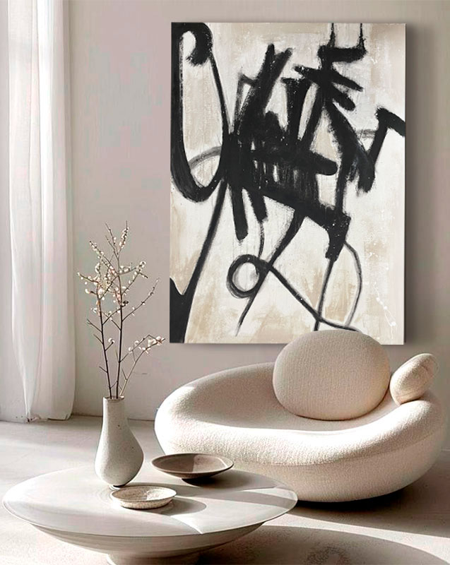 Sumérgete en la fuerza y el impulso de nuestro cuadro abstracto gestual de la exclusiva Serie DELIER 25. Esta obra de arte original está dominada por una energía gestual muy intensa, plasmada en trazos negros gruesos, decididos y espontáneos sobre un fondo neutro de gran luminosidad. No es solo un cuadro; es una declaración de intenciones que transmite fuerza, dinamismo y un equilibrio fascinante entre el caos creativo y la forma definida. Perfecto para inyectar carácter y sofisticación a tu salón moderno, oficina o dormitorio.