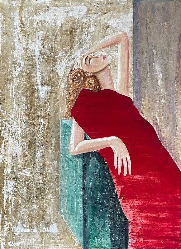 Cuadro "Dama en Carmín" – Óleo y Estuco sobre Lienzo (80x110cm)