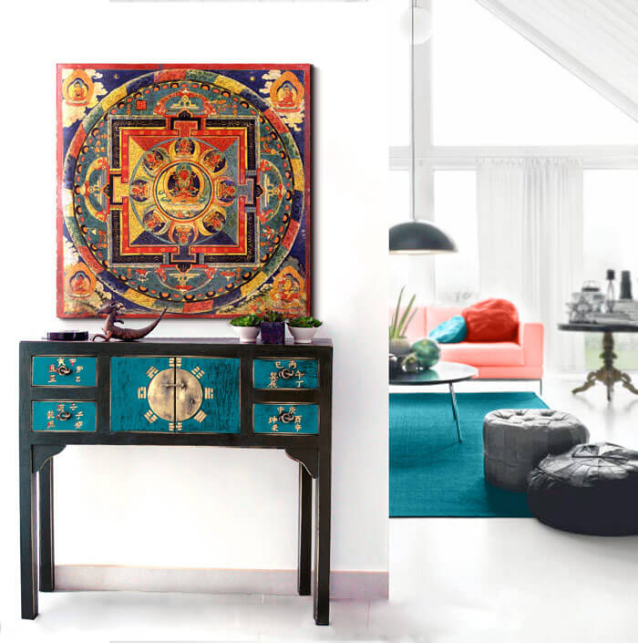 Cuadro mandala reproducción del original, esta reproducción numerada a 50 unidades esta serigrafiada sobre lienzo de lino y bastidor de madera de 3.5cm de grosor, la reproducción es idéntica gracias a la tinta especial, se observan los desgastes y desperfectos del original también reproducidos
